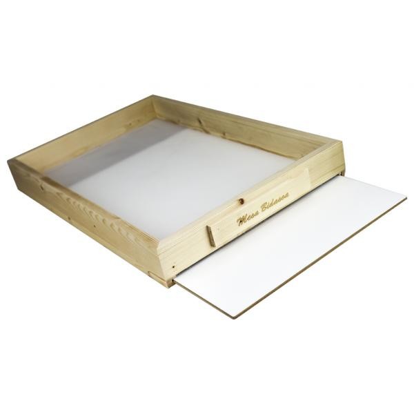 Esta fantástica mesa de trabalho tem no seu fundo uma rede através da qual se filtram os pólens que caiem das flores...