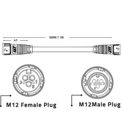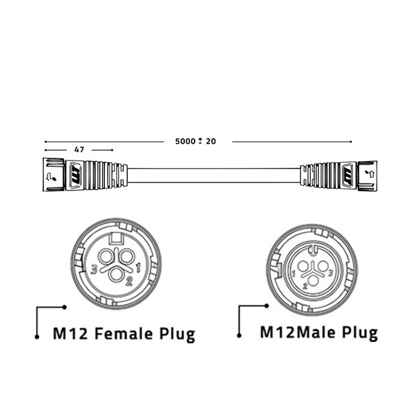 Moldagem por injeção dos conectores macho e fêmea com encaixe automático M19-2 com cabo de extensão de 5m